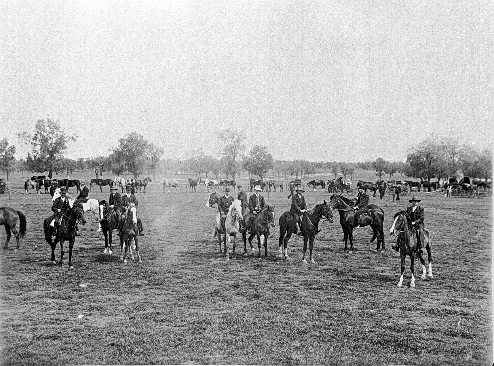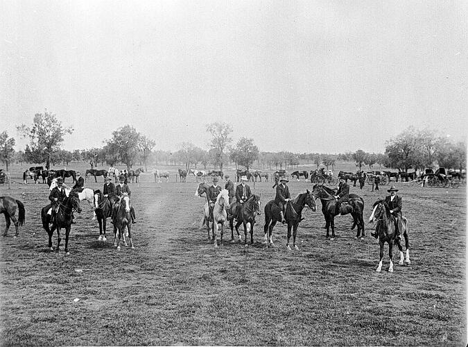 A group of men on horseback at the Rainbow Show.