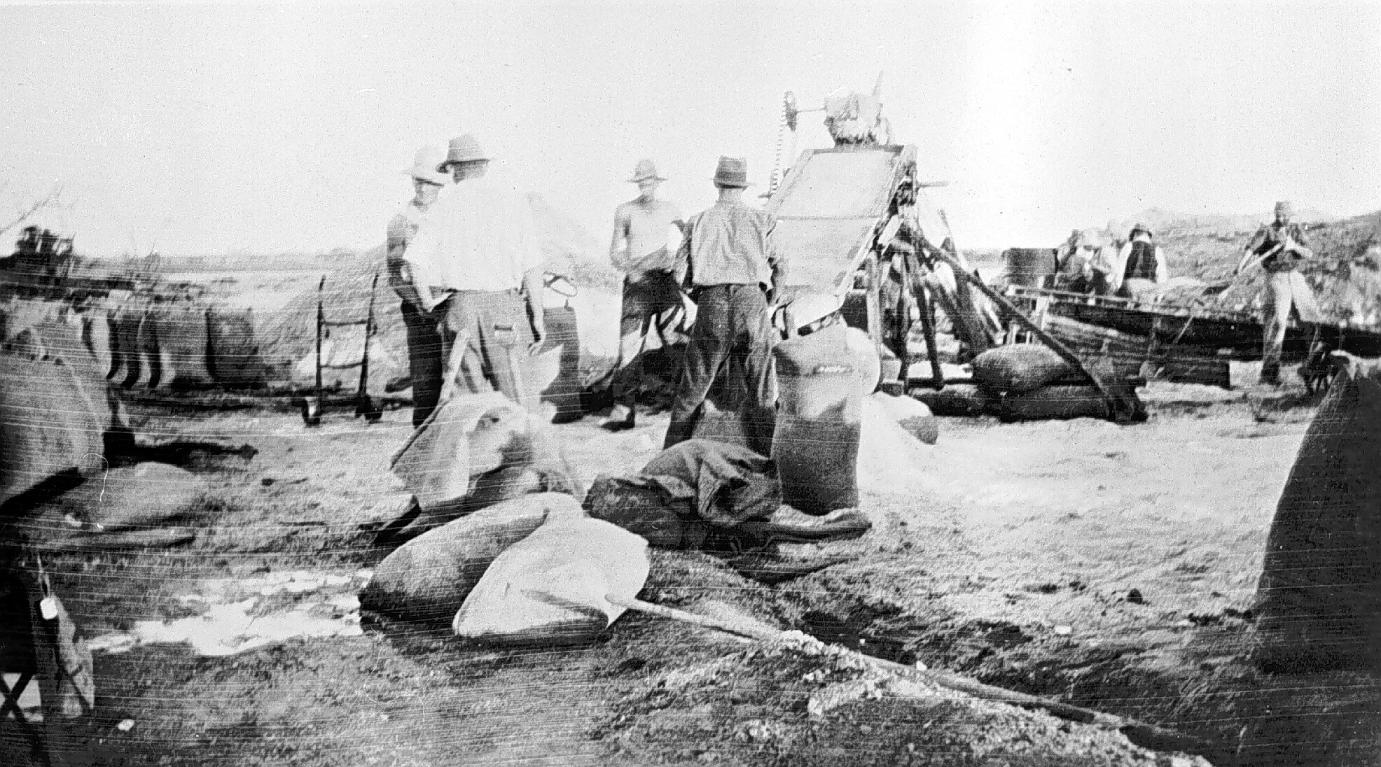 Agricultural Equipment, Agricultural Workers, Cereal Crops, Sacks, Threshing Equipment, Workers