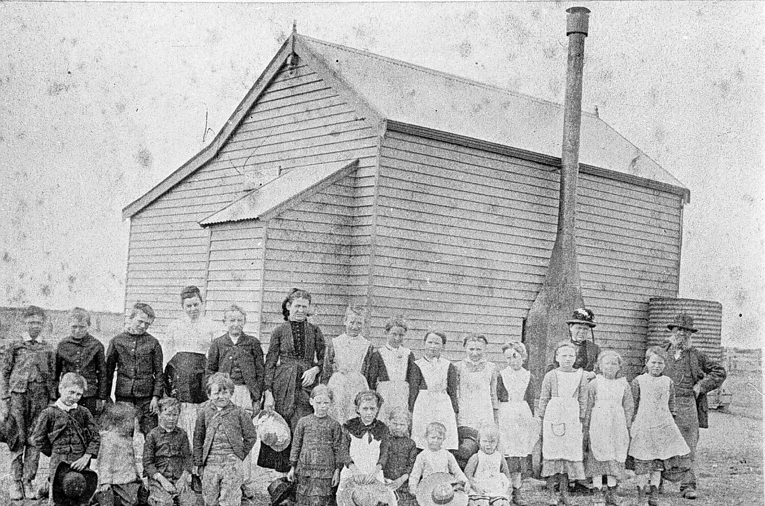 Teachers and children outside the Hopefield School.