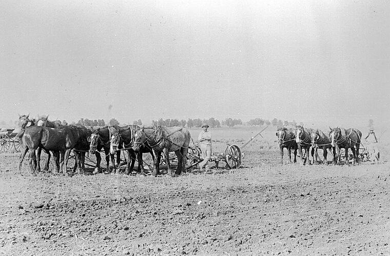 Agricultural Equipment, Agricultural Workers, Carriages, Farms, Horses, Ploughs