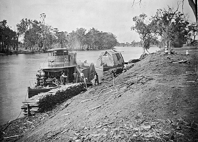 Barges, Paddle Steamers, Rivers, Signage, Woodpiles, Workers