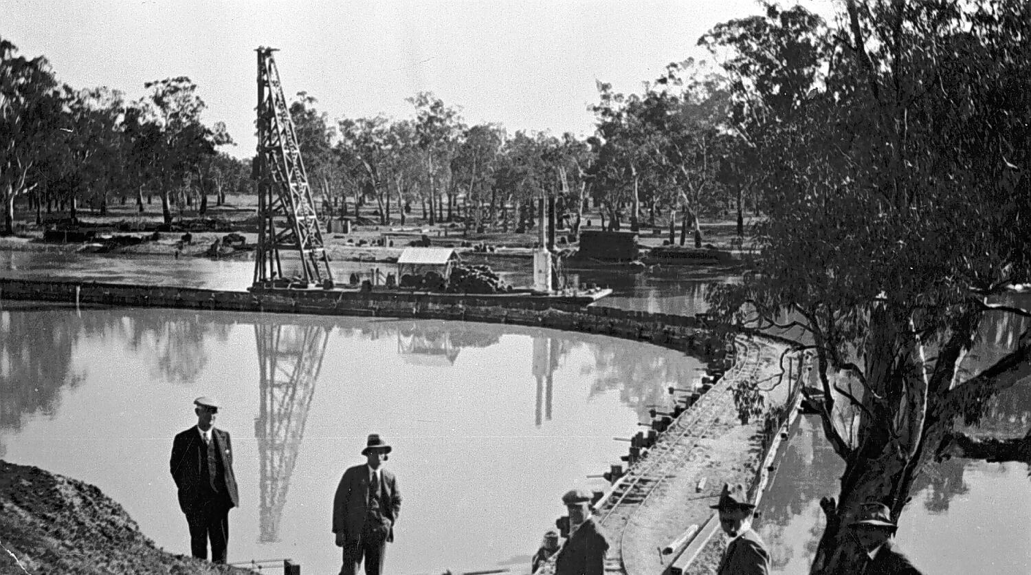 Constructing a weir at Euston on the Murray River.