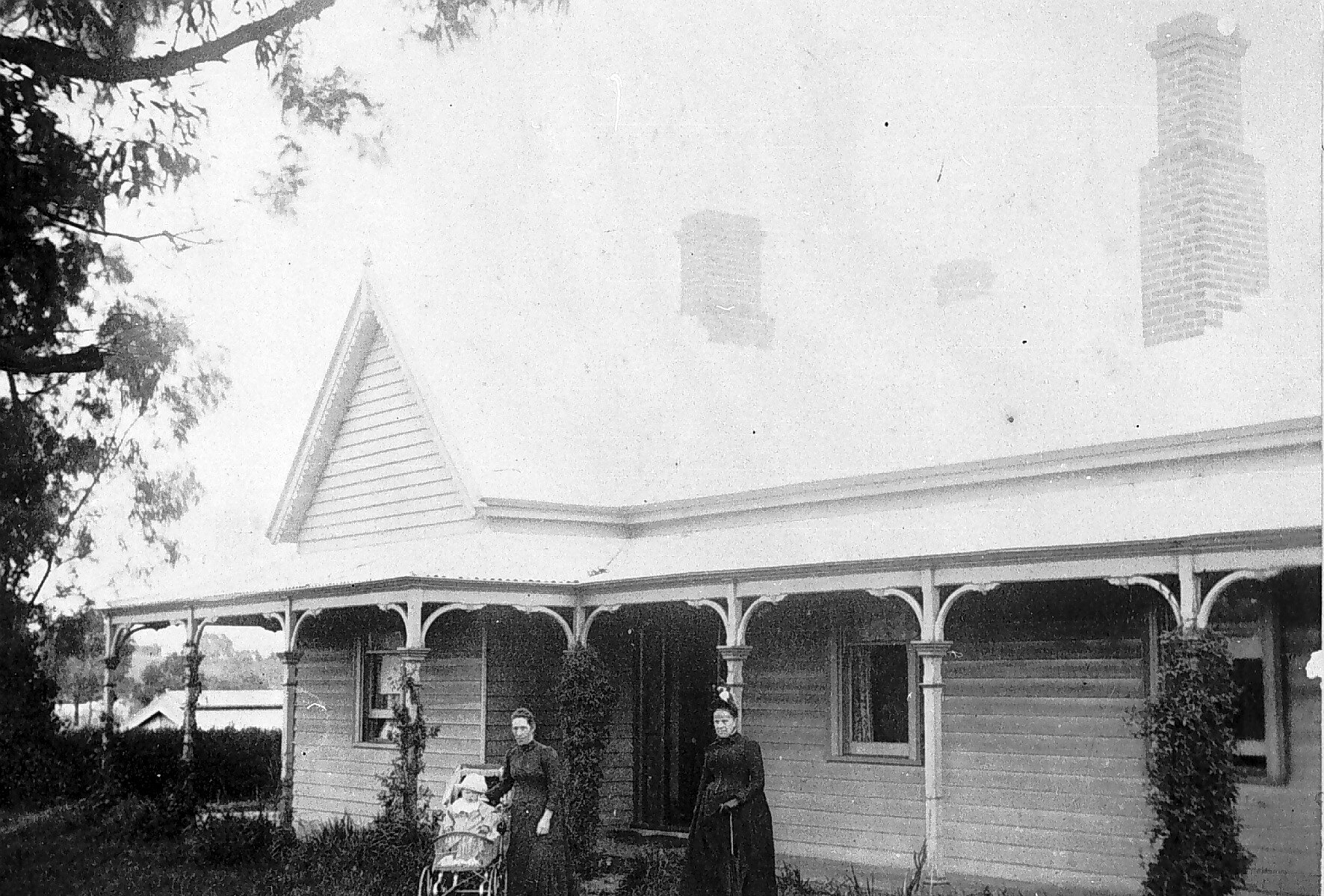Two women and a child outside Dr Charles Smith 's house.