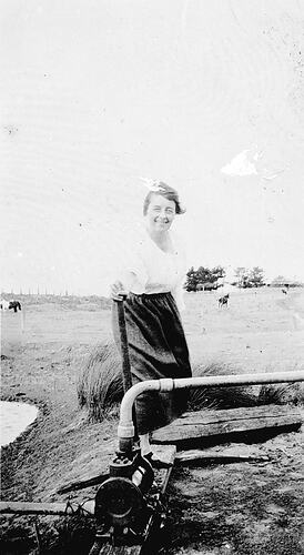 Agricultural Equipment, Agricultural Workers, Dams, Farms, Pumps, Workers, Closer Settlement Scheme, Women on Farms, Rural Life, Rural Women, Women on Farms, Women Farmers, Women in Agriculture