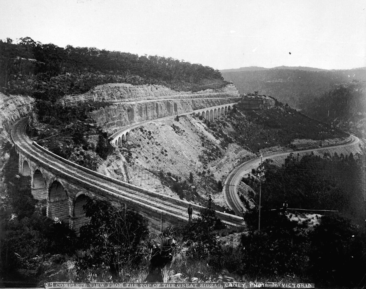 Hand written in white, across bottom of photograph; "59. COMPLETE VIEW FROM THE TOP OF THE GREAT ZIGZAG. CANEY PHOTO: MT. VICTORIA"