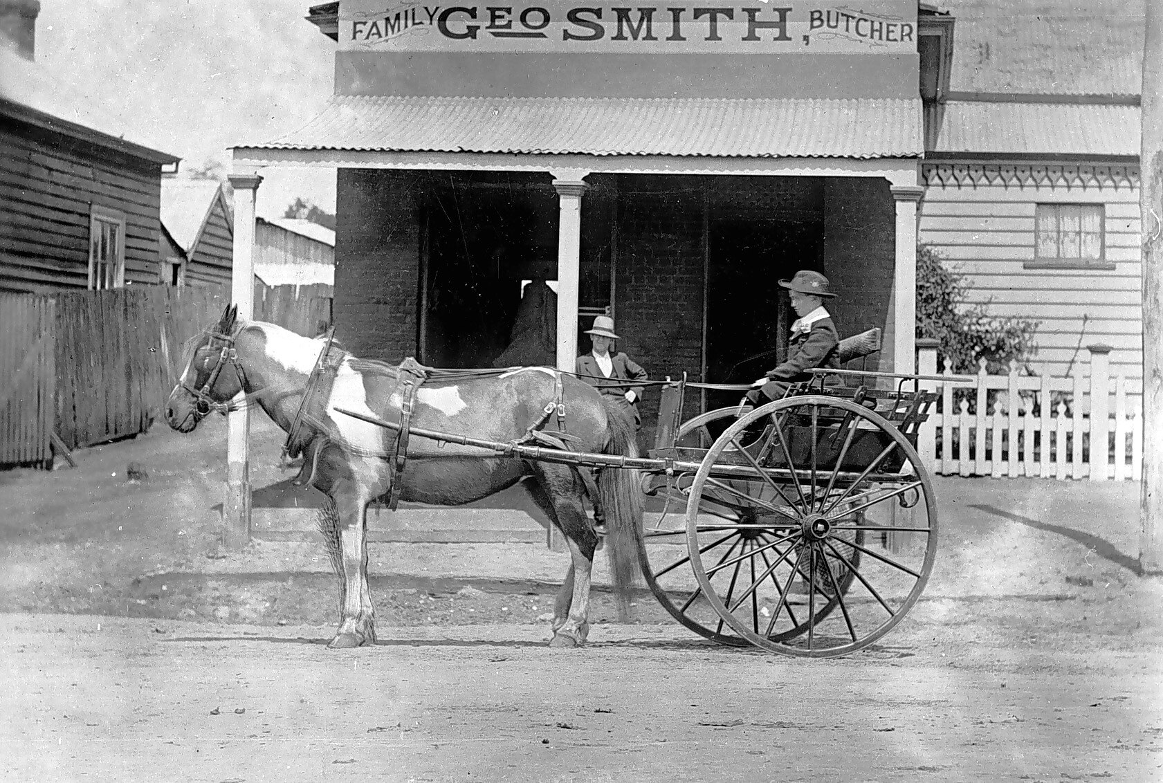 Advertising, Butchers, Families, Horsedrawn Vehicles, Picket Fences, Verandahs