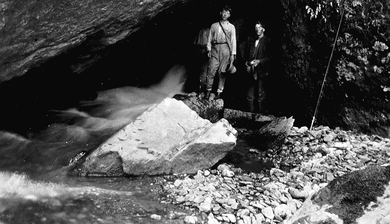 Two of the Woods brothers in an underground river at Mitchell 's Creek.