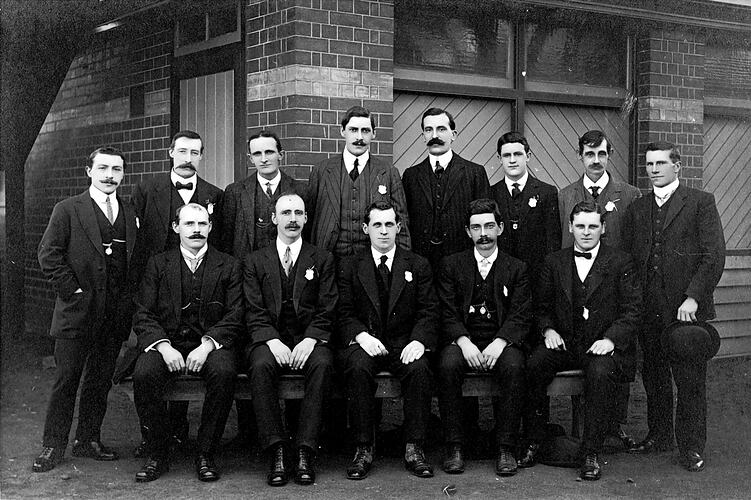 Committee members for the England v Scotland soccer match of the Victorian Amateur British Football Association.