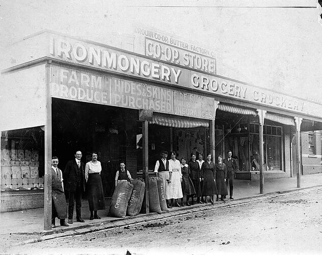 Advertising, Co-Operatives, General Stores, Retail Workers, Retailing, Shops, Verandahs