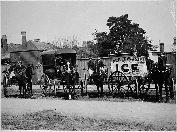 Four ice carts belonging to Mrs F. Edwards Ice Company.