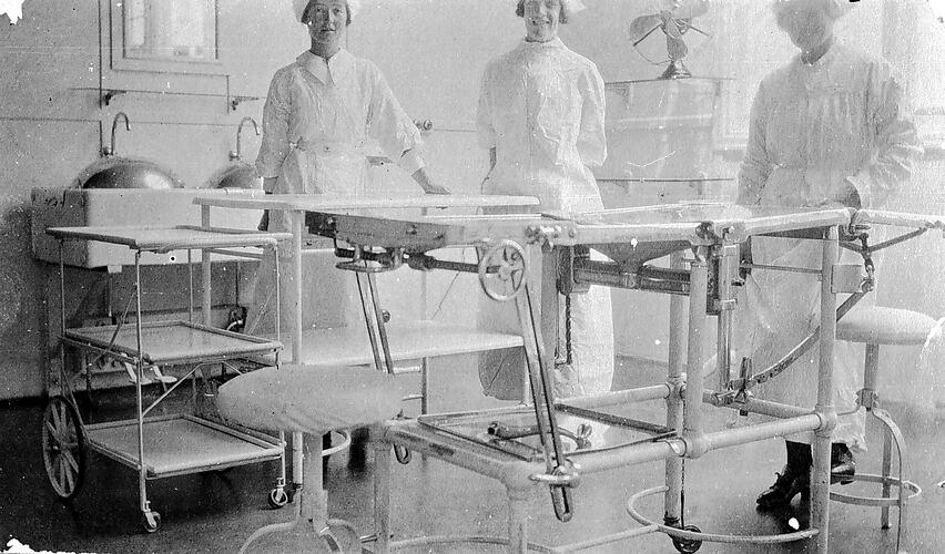 Three nurses in the operating theatre at the Geelong Hospital.