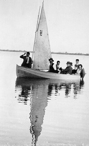 People sailing on lake charm.