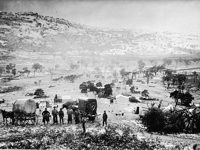 Covered Wagons, Goldfields, Horsedrawn Vehicles, Miners, Mining, Tents