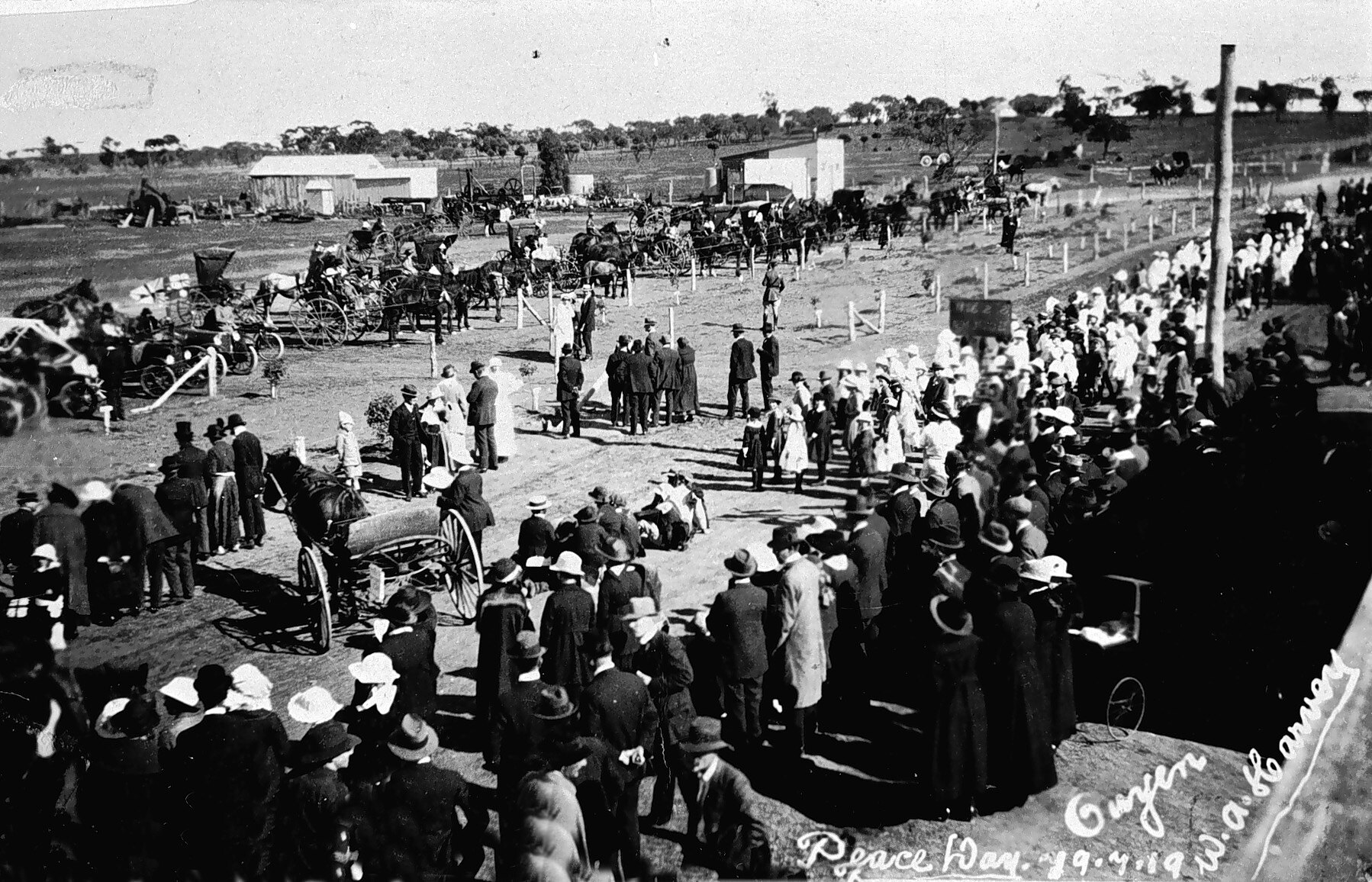 Printed at lower right of photograph: Ouyen/ Peace Day, 19.7.19 / W.A. Keanney