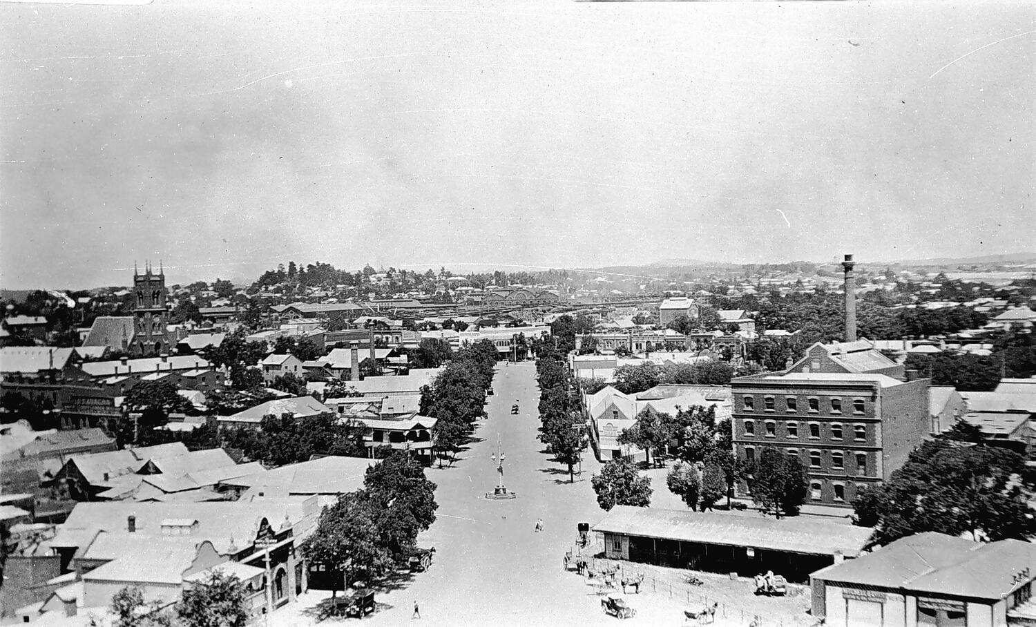 Looking down on Bendigo. St Paul's church is on the left in the background.