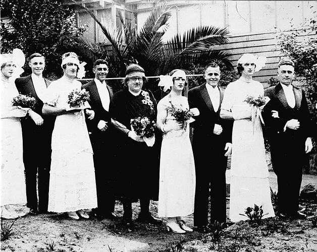 Men dressed as debutantes for a fund raising project for the Ironbark Tennis Club.