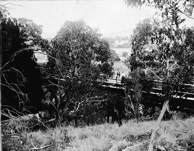 People standing on the water race at Whiskey Gully.