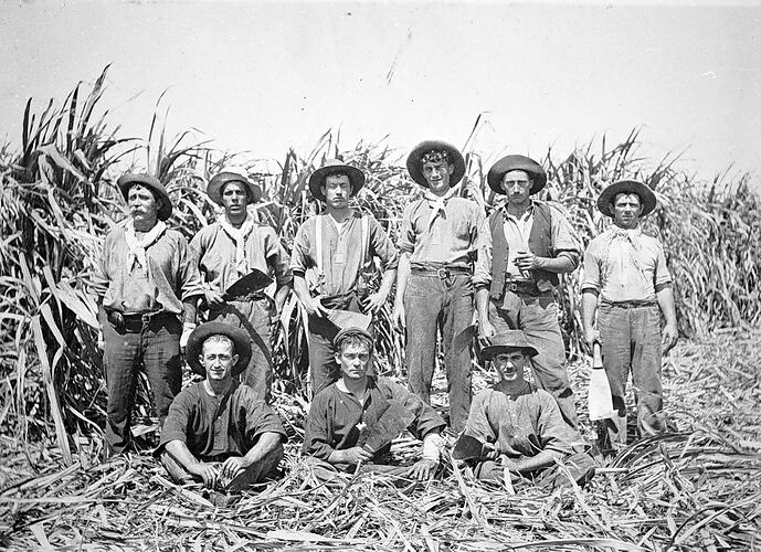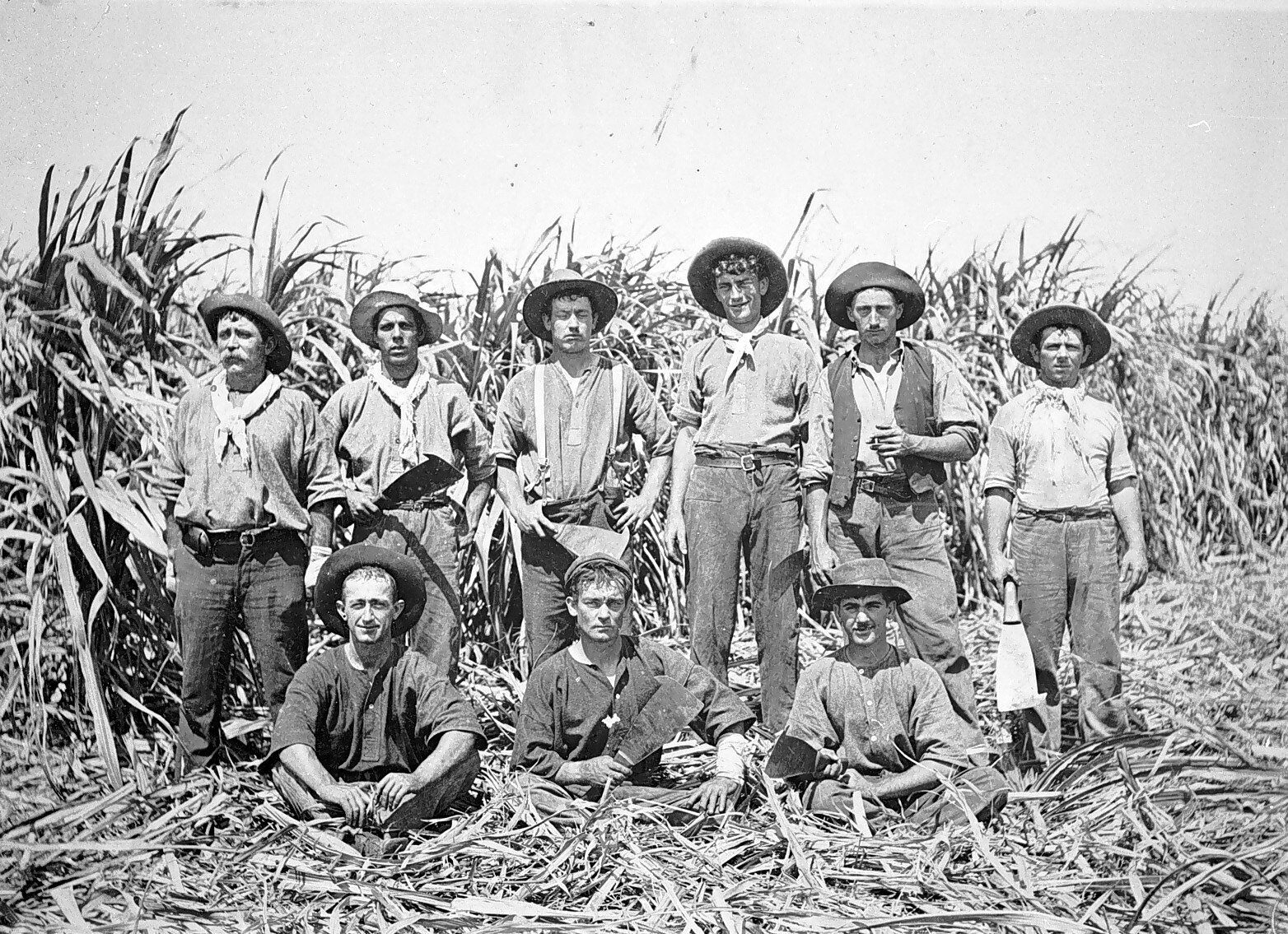 A group of cane cutters in a cane field.