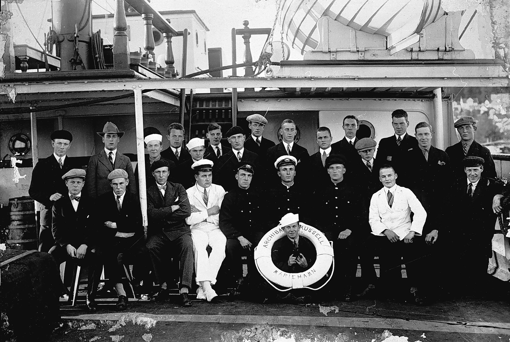 The crew of the SS Archibald Russell. This ship carried wheat from Geelong to Europe.