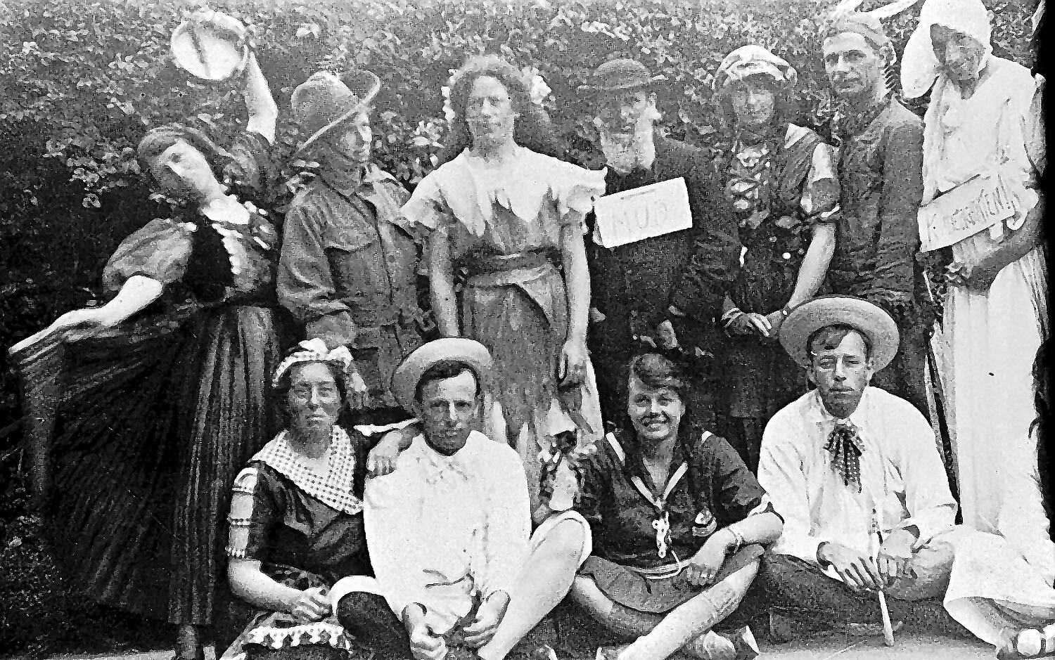 A group of people dressed for a fancy dress party.