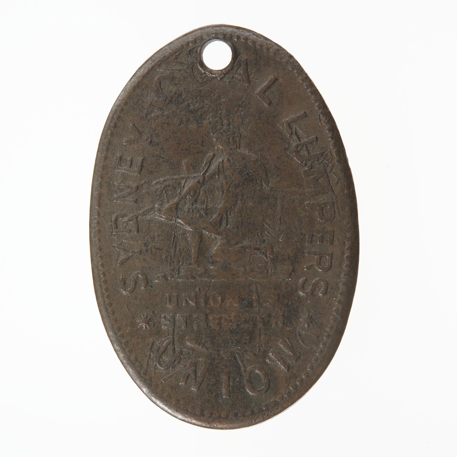 Bronze badge, manufactured for the Sydney Coal Lumpers Union. It was worn to represent membership of the union.
