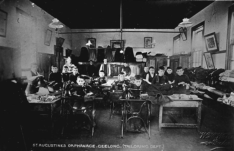 Printed across bottom of photograph: ST. AUGUSTINES ORPHANAGE. GEELONG (TAILORING DEPT.)