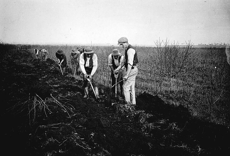 Men digging up trees for export at the C. J. Goodman Fruit Tree Nursery.
