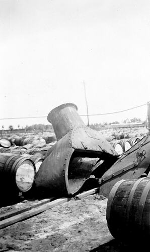 Part of the boiler housing after the boiler explosion which destroyed a shed at the Mildura Co-operative fruit shed.