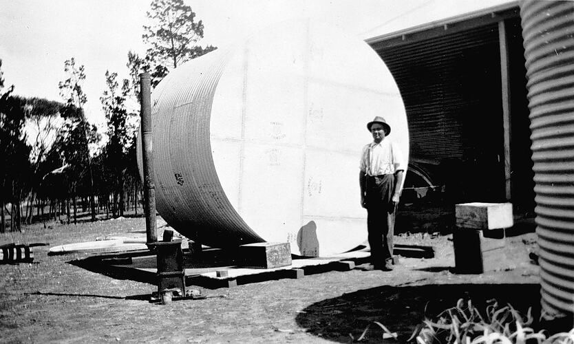 A man erecting a water tank.