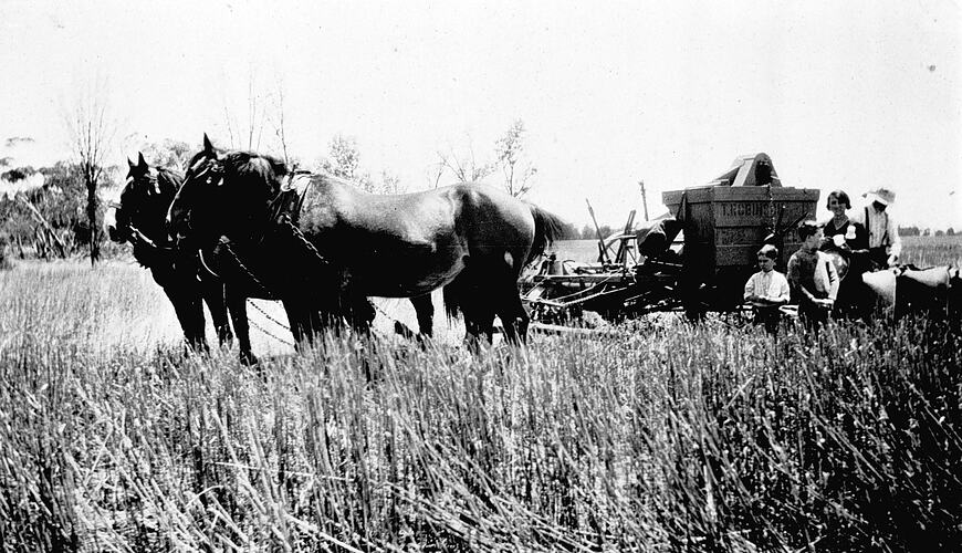 Agricultural Equipment, Agricultural Workers, Families, Farms, Harvesters, Harvesting, Horses, Wheat, Working Life