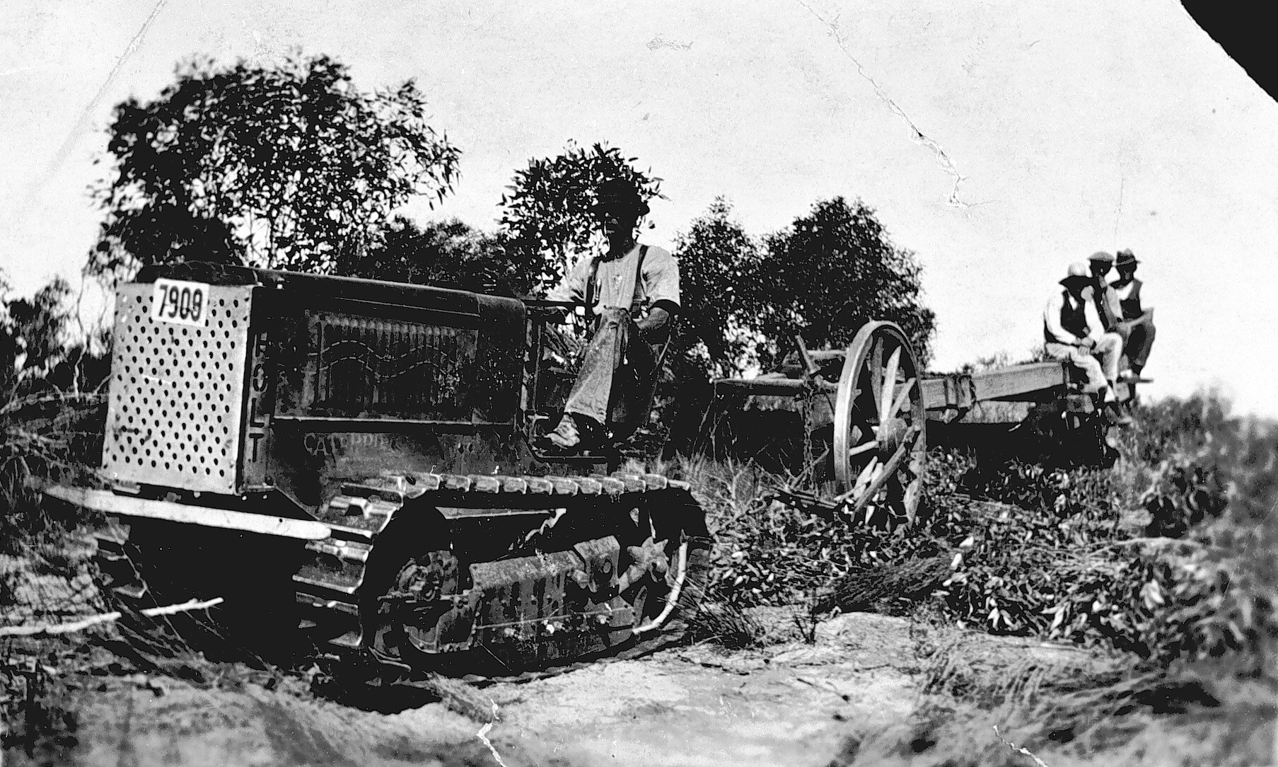 Using a Holt tractor to clear Mallee scrub.