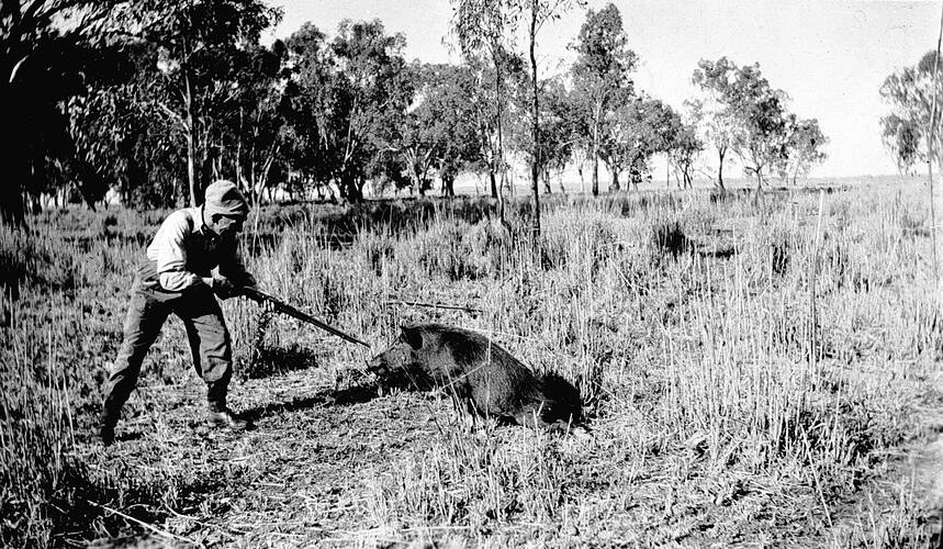 Man shooting a pig.