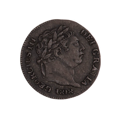 Laureate head of the King facing left; around, GEORGIUS IIII D. G. BRITANNIAR. REX F. D.