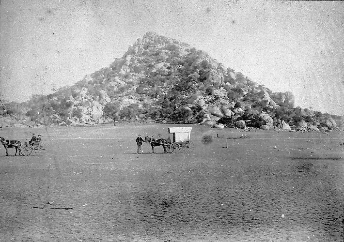 Pyramid Hill. There is a horse and carriage on the left and a horse-drawn van in the centre of the photograph.