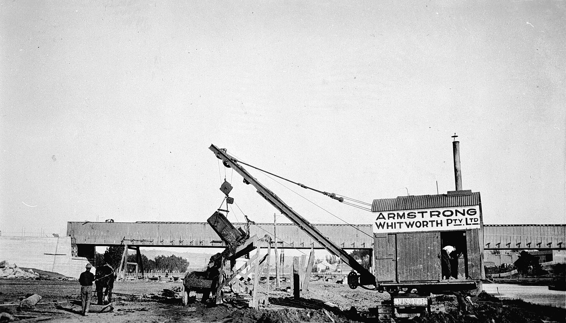 Bridge Construction, Horsedrawn Vehicles, Power Shovels, Rivers, Signage