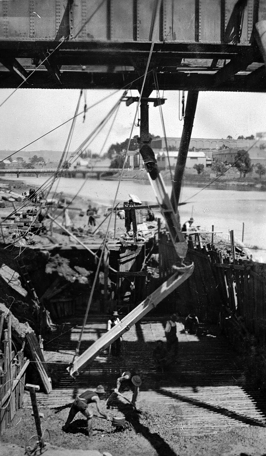 Men at a bridge construction site.