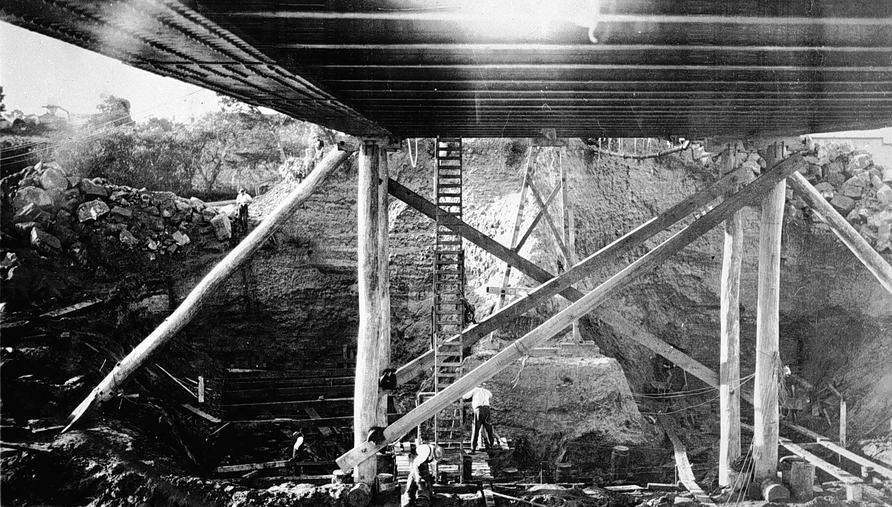 Men at a bridge construction site.