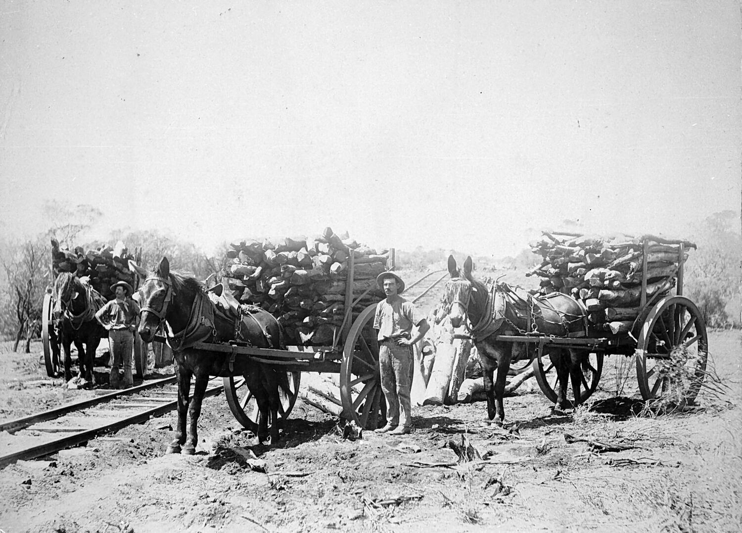 Carts, Horsedrawn Vehicles, Logging, Railway Lines, Timber, Timber Workers