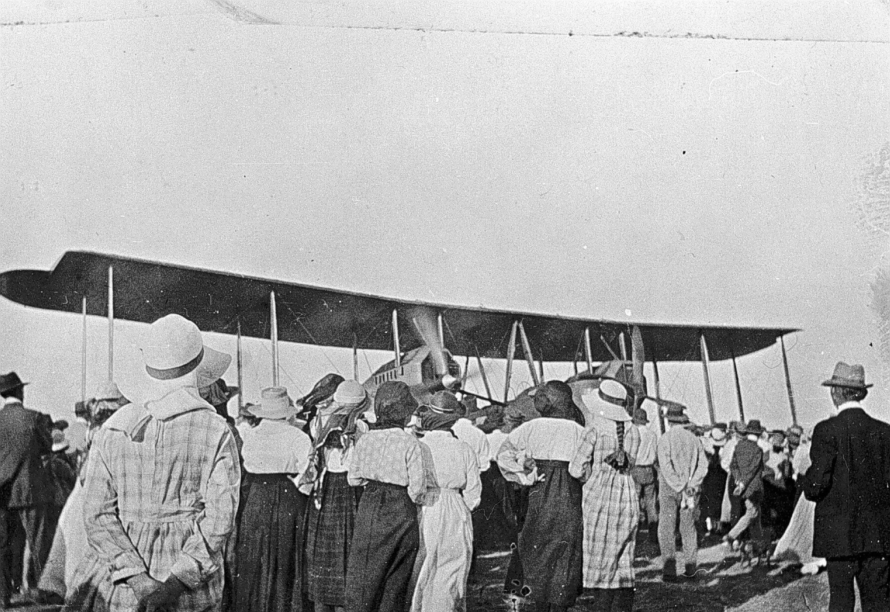 Crowds at 'Portland Downs' station around the Vickers Vimy aircraft flown by Sir Keith Smith. (See also MM 00839).