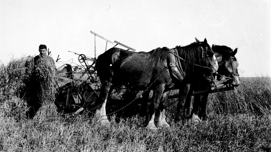 Agricultural Equipment, Agricultural Workers, Farms, Harvesting, Horses, Reaper-Binders