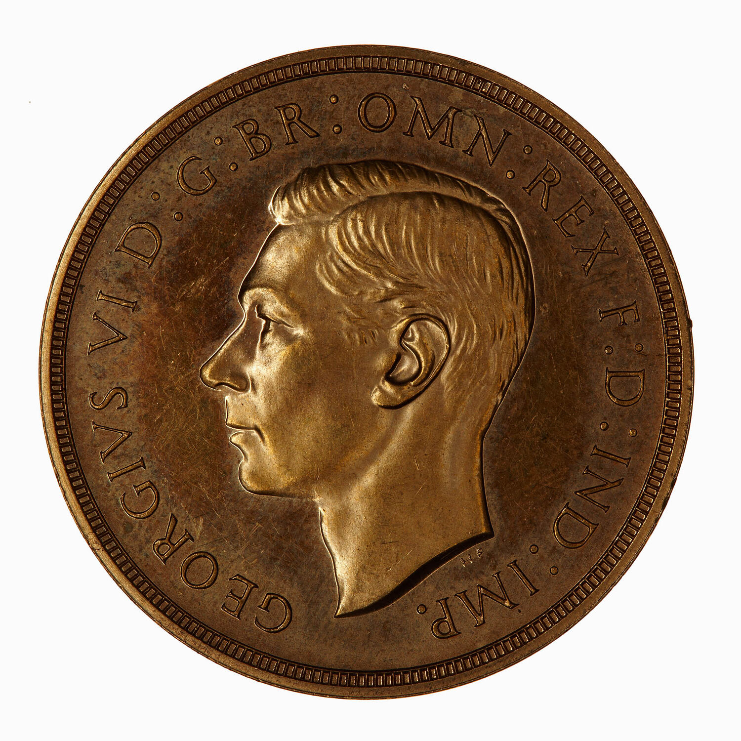 Bare head of the King facing left; below neck in small letters, HP (T. Humphrey Paget); around, GEORGIVS VI D: G: BR: OMN: REX F: D: IND: IMP: