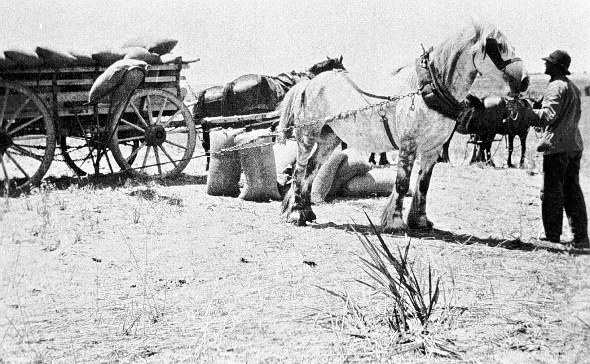 Agricultural Equipment, Agricultural Produce, Bag Handling Equipment, Carriages, Cereal Crops, Drays & Wagons, Horses, Sacks