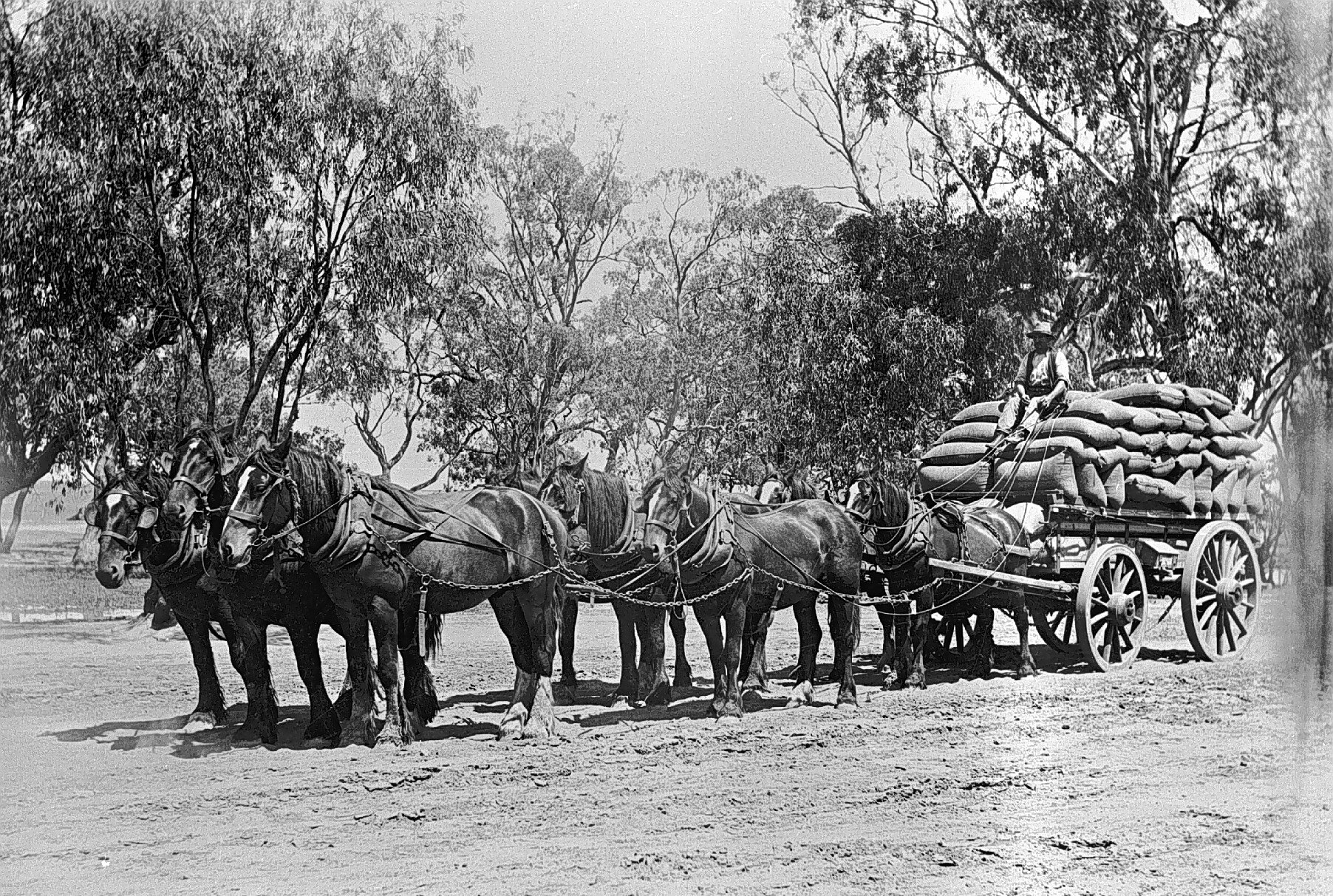 Agricultural Produce, Carriages, Drays & Wagons, Horses, Sacks, Workers