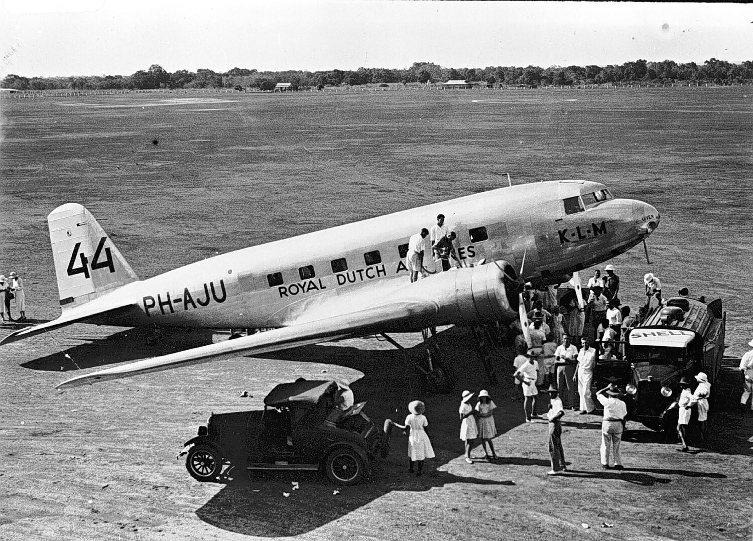 The Douglas DC2 'Uiver' flown by Parmentier and Moll for KLM in the 1934 MacRobertson Melbourne Centenary Air Race (from England to Australia), refueling in Darwin. Parmentier and Moll came second in the race, which was won by Scott and Campbell Black.