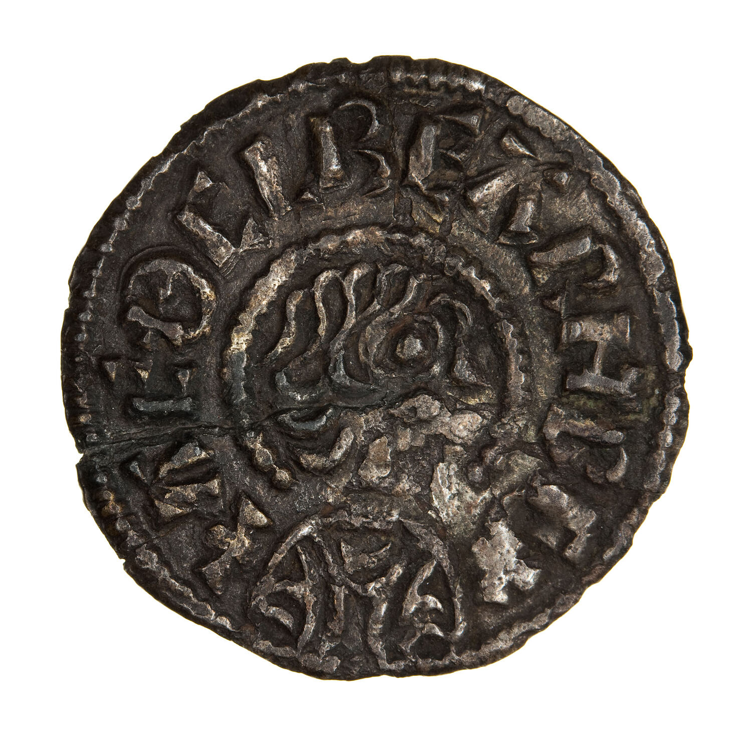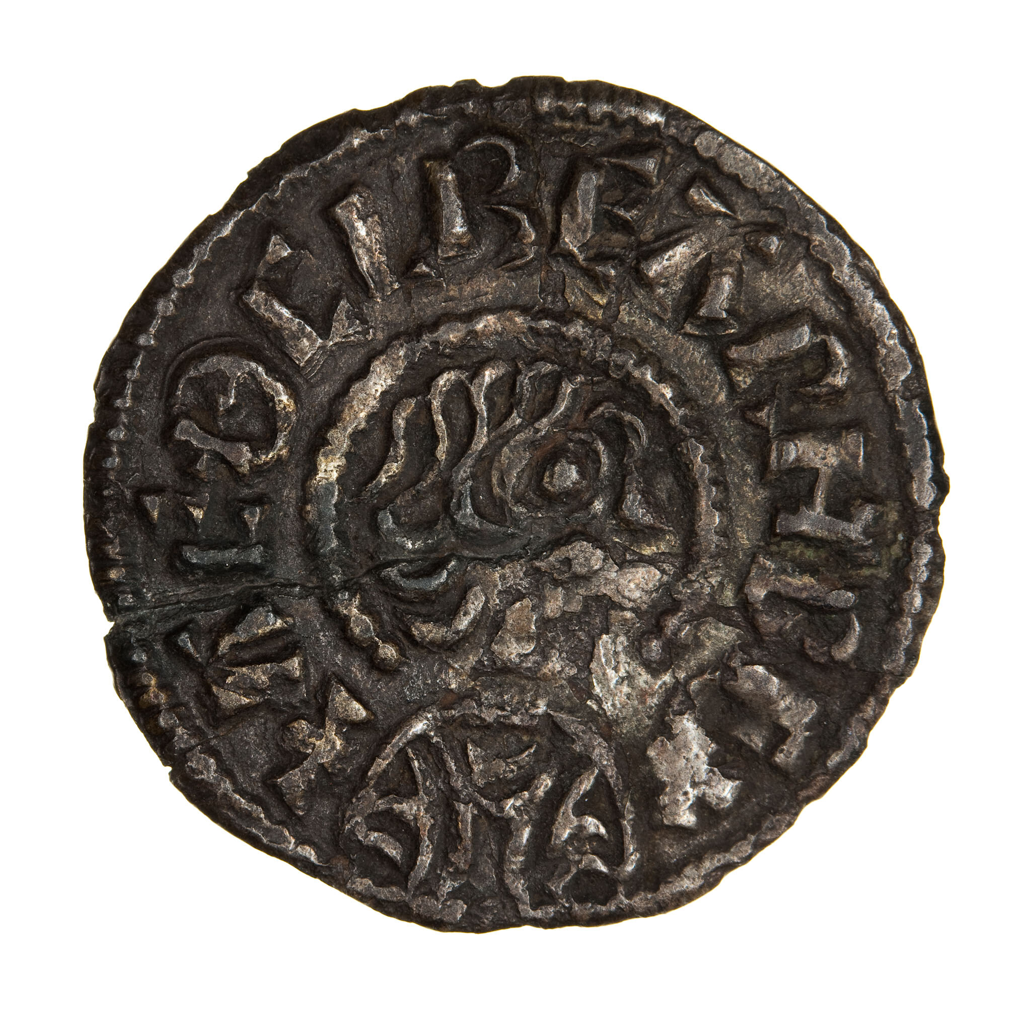 A crude bust facing right, the base extends to the edge of the coin; around, AEDELBEAR(HT)REX the (HT) in monogram.