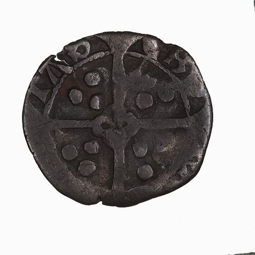 This coin is worn and has been clipped. A crowned bust of the King facing with a lis on bust (?); legend cannot be read