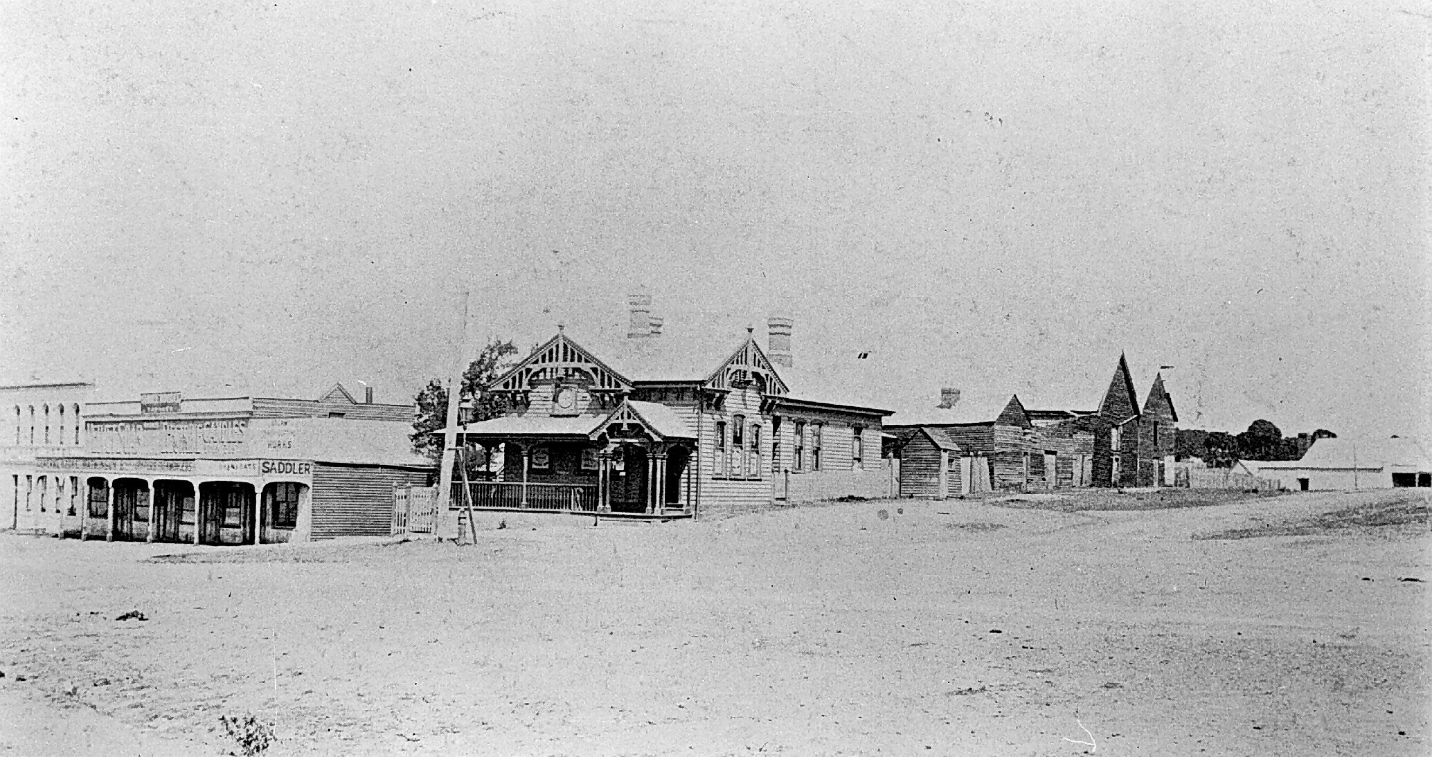 Maher 's Hotel, Kohn Saddler, the Post Office and the chaff mills in Gordon.