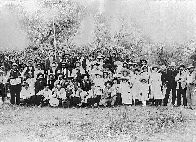 A group at a racetrack meeting. Jack Egge, Mildura bookmaker, is on the left.