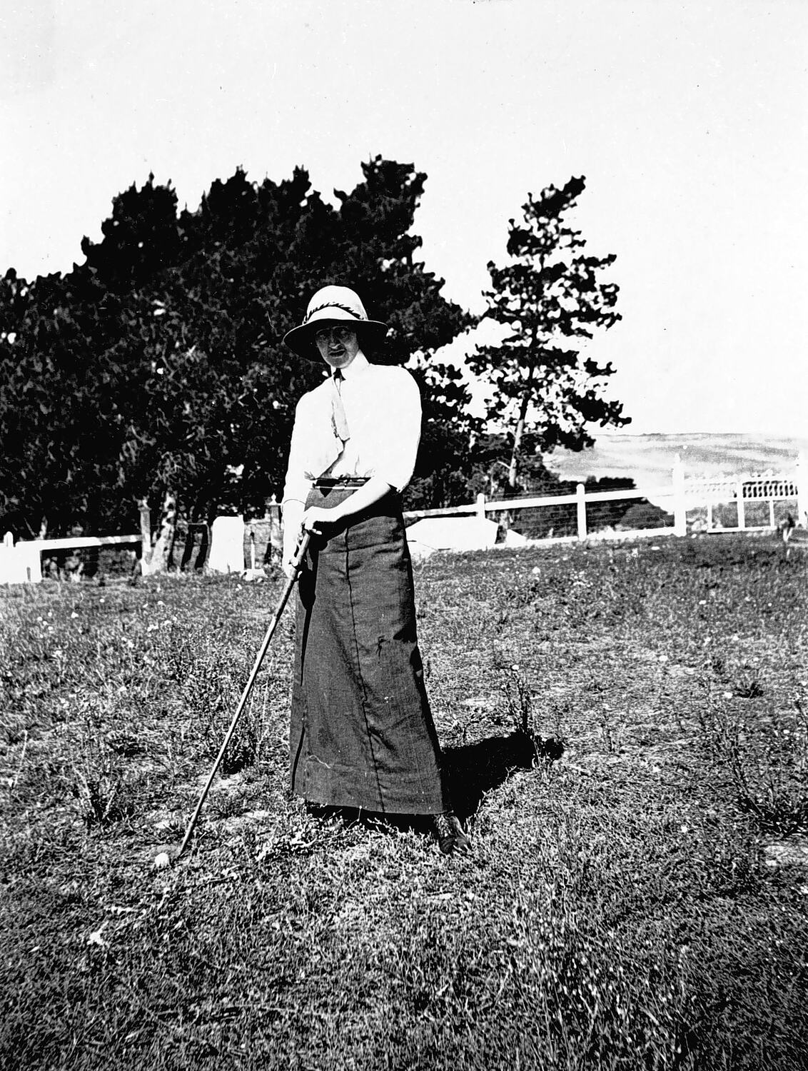 A woman with a golf club and ball at 'Moredun Hill' station.