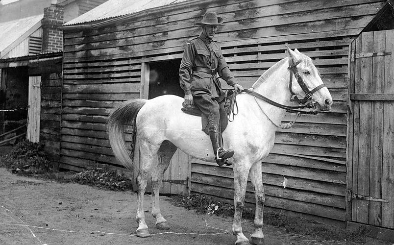 A soldier on horseback, believed to be taken when he was on final leave before leaving for World War I.
